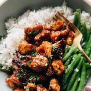 I made this today for lunch. It was my first time cooking with tofu so I knew it wasn’t going to be perfect but it was pretty good and I learned what to adjust for next time! Next time I’ll tear the bigger chunks even smaller so they crisp up more because the smaller crispy pieces had a nice chewy texture. The sauce was really good and would work with chicken., I had mines with leftover white rice and a side of sugar snap peas.